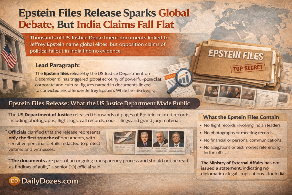 The Epstein files release by the US Justice Department on December 19 has triggered global scrutiny of powerful political, corporate and cultural figures named in documents linked to convicted sex offender Jeffrey Epstein. While the disclosures fuel debate in the United States, claims in India that the files would cause political upheaval or implicate Prime Minister Narendra Modi have found no factual basis, according to publicly released records.