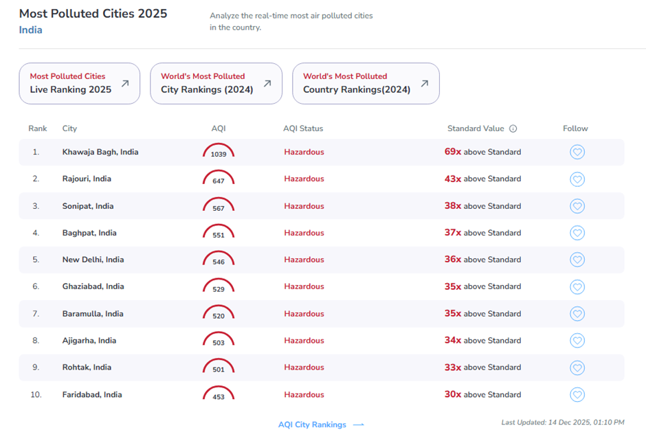 Delhi-NCR enforces GRAP Stage IV on December 13, 2025, after the region’s Air Quality Index (AQI) spikes to 431 by 4 pm and 441 by 6 pm, On December 14, 2025, the AQI was 507 at 2 pm entering the Severe+ category. The Commission for Air Quality Management (CAQM) triggers the strictest emergency measures under the Graded Response Action Plan (GRAP), citing stagnant winds, high moisture, and poor pollutant dispersion across the National Capital Region.