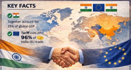Together, India and the EU account for nearly 25% of global GDP, making this one of the largest bilateral trade agreements ever concluded. Its timing—amid supply-chain diversification away from China and renewed protectionism in parts of the West—adds to its strategic weight.