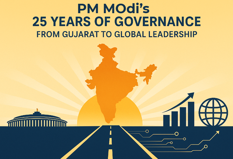 On 7th October 2025, Prime Minister Modi completes 25 years of continuous governance — a remarkable journey that began on 7th October 2001, when an ordinary party worker from Gujarat took oath as the state’s Chief minister. Few could have imagined that this day would mark the beginning of a new political era, one that would eventually redefine India’s development model and global standing.