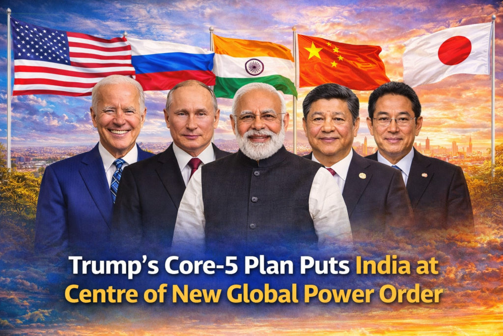 Trump Core-5 plan signals a dramatic shift in the global power structure, placing India alongside the United States, China, Russia and Japan in a proposed elite decision-making group that could challenge the relevance of the G7 and existing multilateral institutions.
