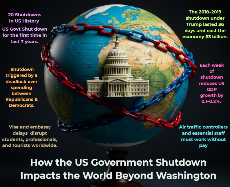 This article explores the global impact of the US government shutdown—from trade and travel delays to economic risks and geopolitical consequences.